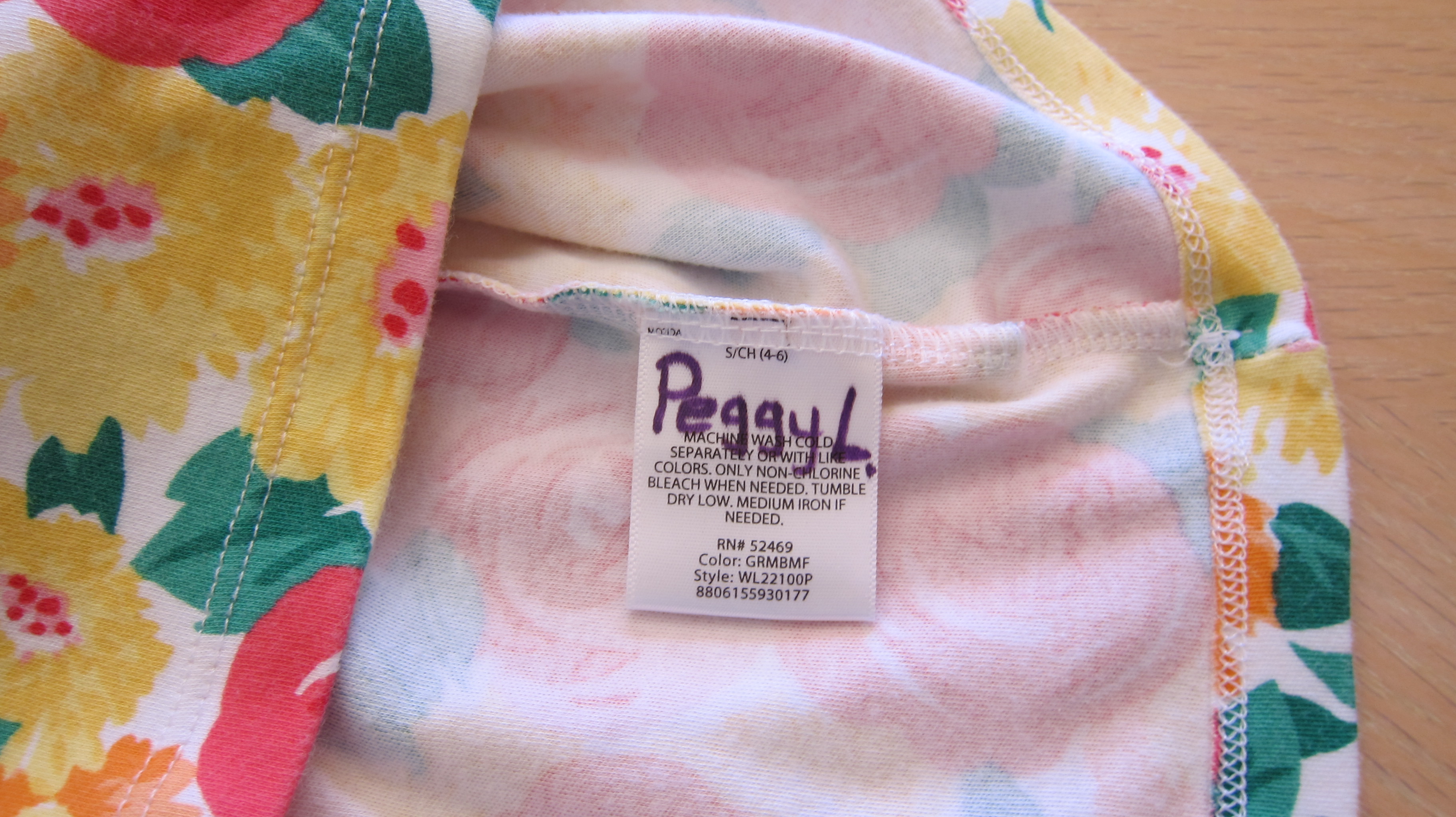 First, it is best to use a “fabric marker or “permanent marker”. The example above shows how to write on a white label, however, there is a lesson to learn from my example, as well. And, that is: do not write over or cover up the care instructions on the garment label. If an item is ruined, it will be easier to argue with the laundress if the directions are clear. See this example below: